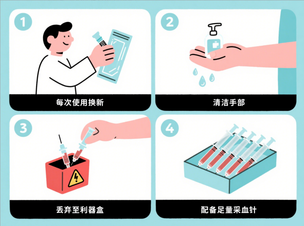 正规医疗机构,护士会当面拆开一次性采血针独立密封包装,用完后当场销毁。