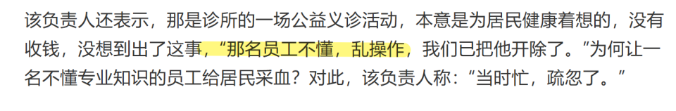 事件中,诊所甚至派出了“不懂专业知识的员工”来操作采血。