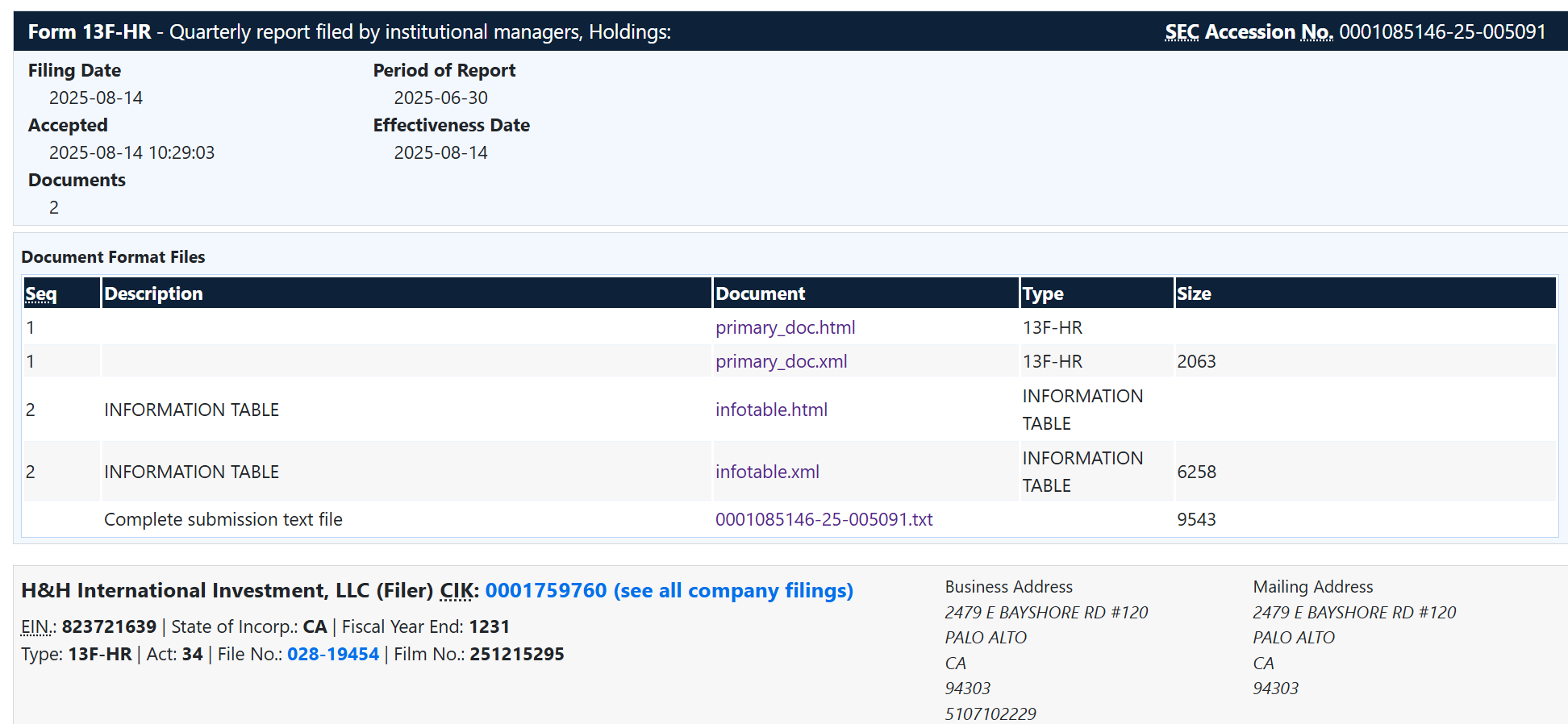 财联社8月15日讯(编辑 史正丞)当地时间周四股票配资中心网址,知名“价值投资信徒”段永平管理的H&H International Investment向美国证券交易委员会提交13F表,披露二季度末节点的多头持仓情况。